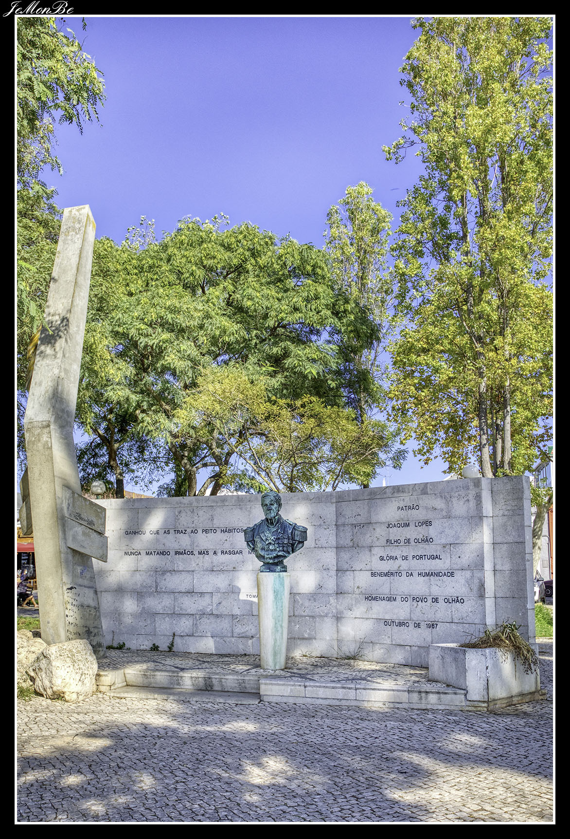 En el jardín Patrão Joaquim Lopes, justo enfrente de la Ría Formosa, se encuentra un busto de bronce posado sobre un pilar, rodeado por un muro y un monumento simbólico a un lado, en honor a Joaquim Lopes