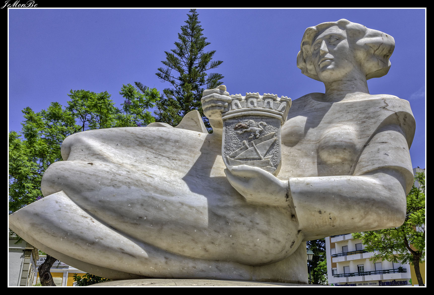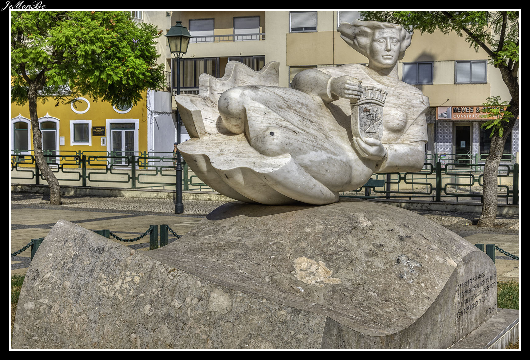 Finalizamos la avenida con El Jardín João Serra, un pequeño espacio verde ubicado en el centro de Olhão, junto a la Estación de Ferrocarril y el Palacio de Justicia (Tribunal). Inaugurado en 1903, tiene desde el 16 de junio de 1990, una estatua que representa a una ninfa emergiendo de las olas.