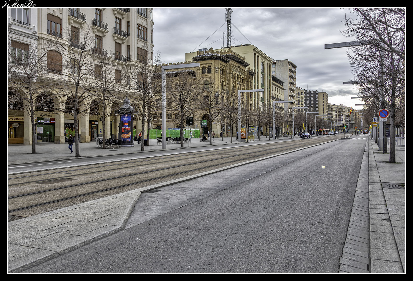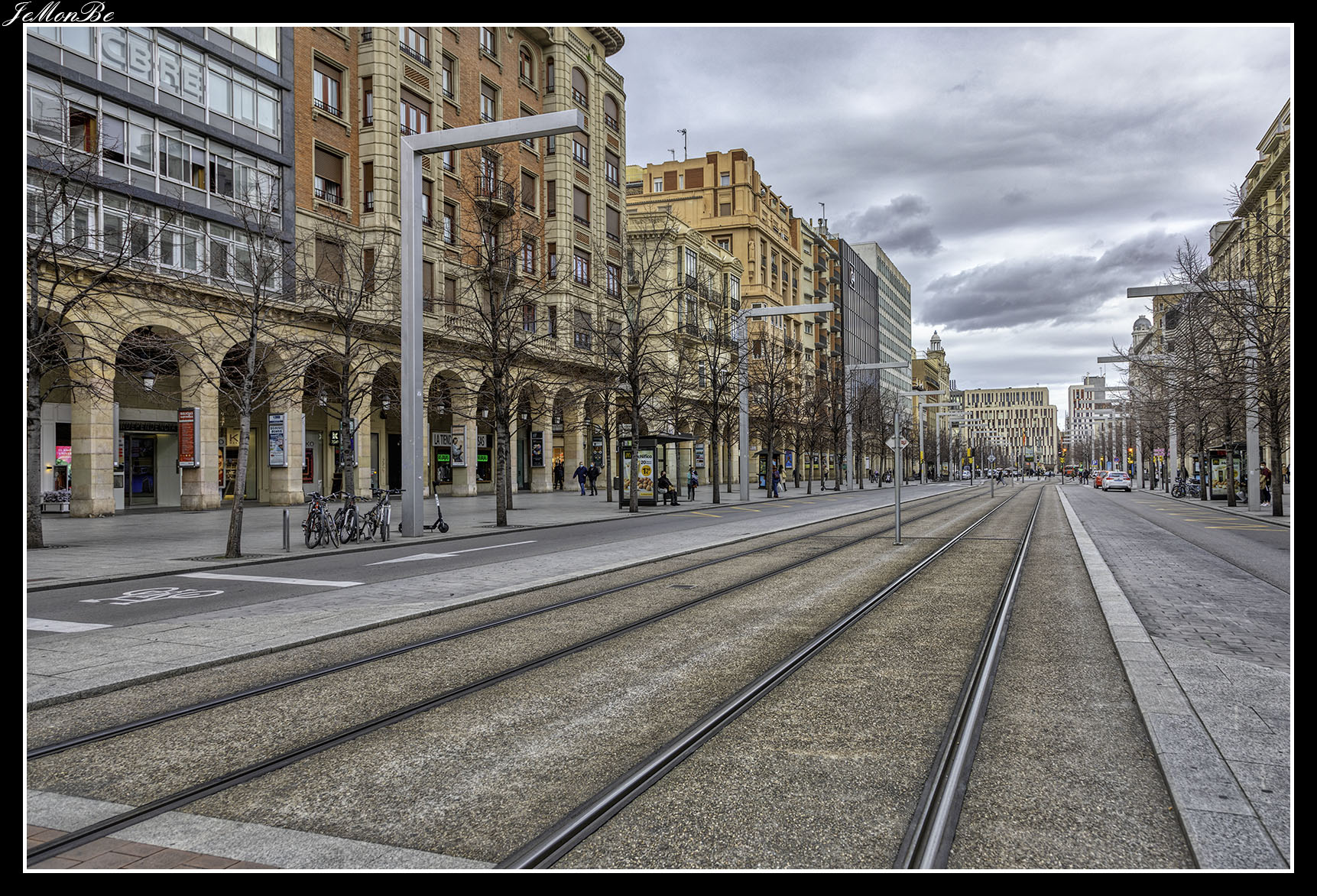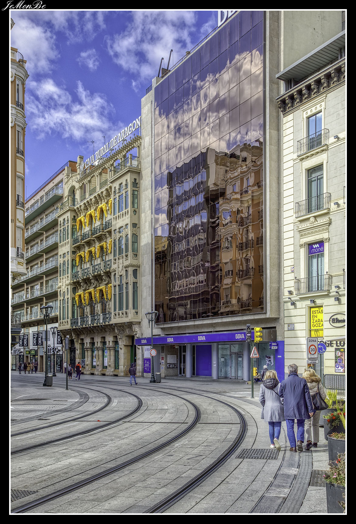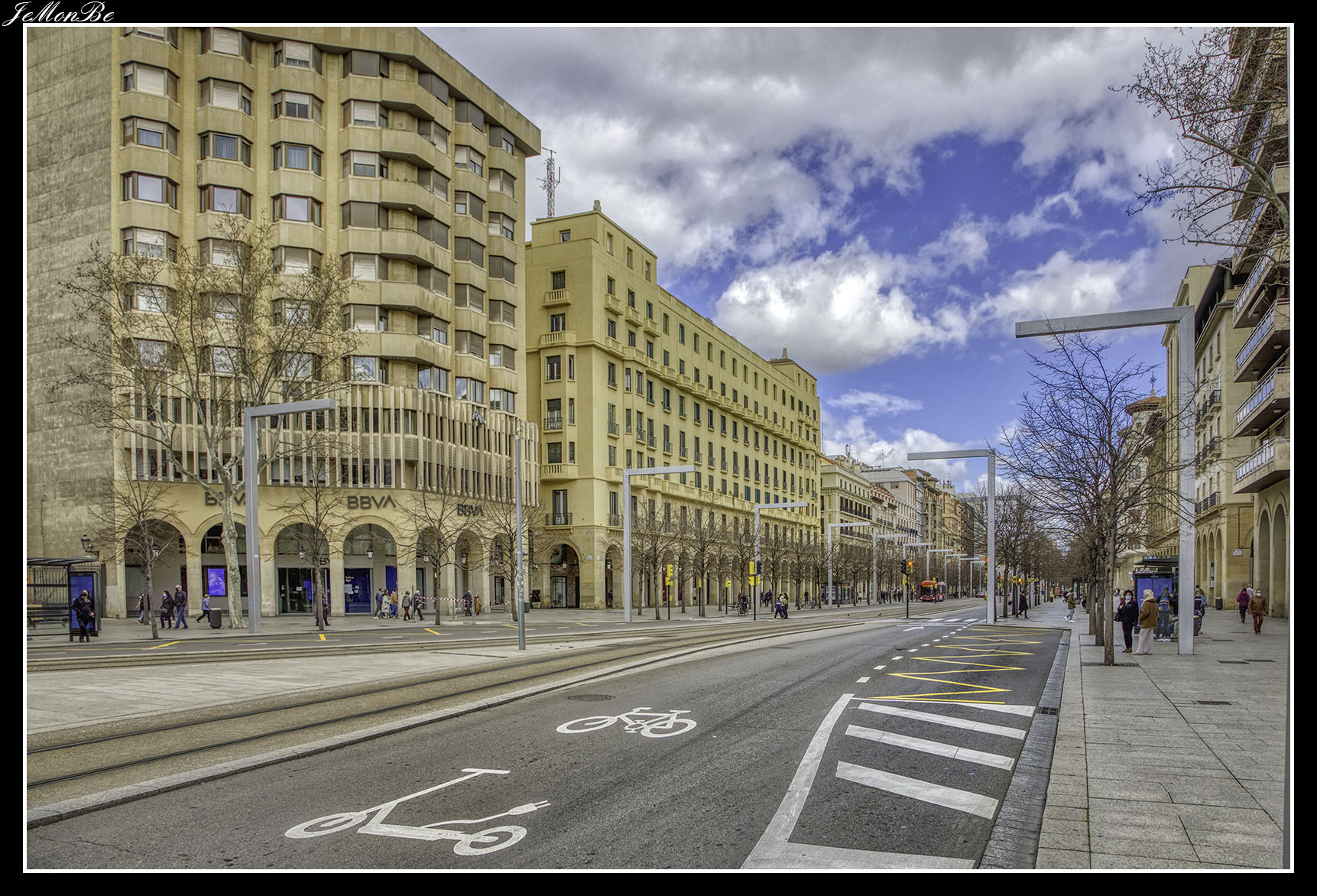 La Gran Vía, comienza en la plaza de Basilio Paraíso y culmina en la avenida Goya. Zaragoza, en el proyecto de Ensanche de 1906 se planteó el trazado de una gran avenida que fuera eje principal de vertebración del ensanche, superando el obstáculo del río Huerva mediante su cubrición parcial. En 1925 se inicia el cubrimiento y comienza a tomar forma una de las arterias de la ciudad que concluyó con un bulevar de cuarenta metros de anchura y casi un kilómetro y medio de longitud, vertebrando los ensanches del sur de la ciudad.