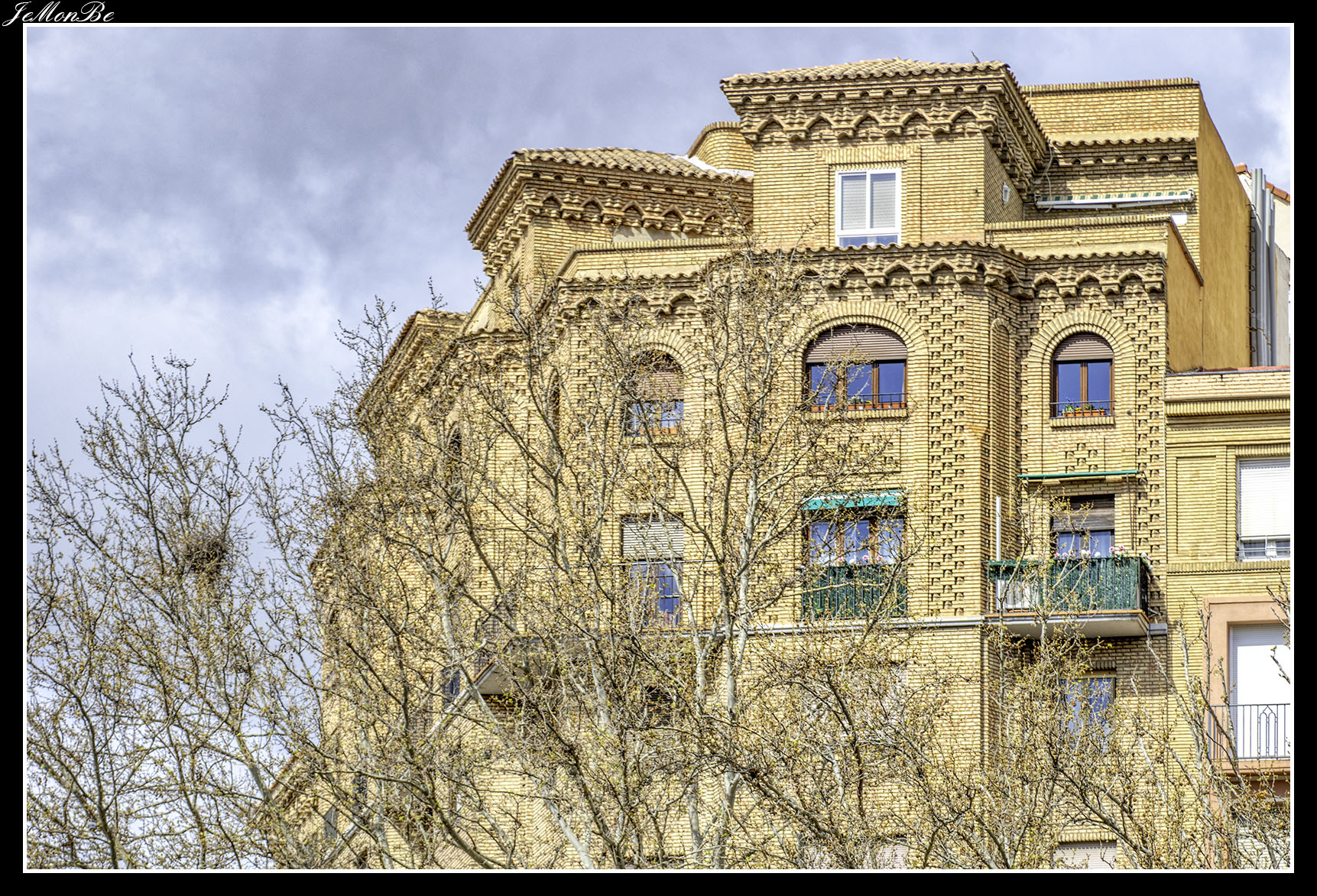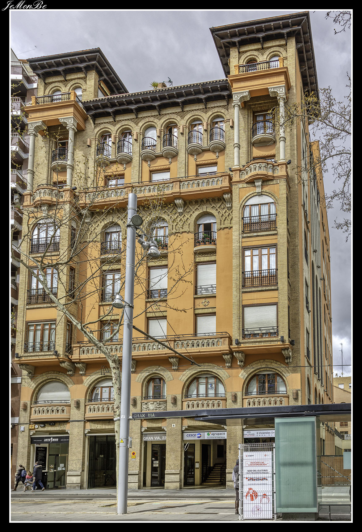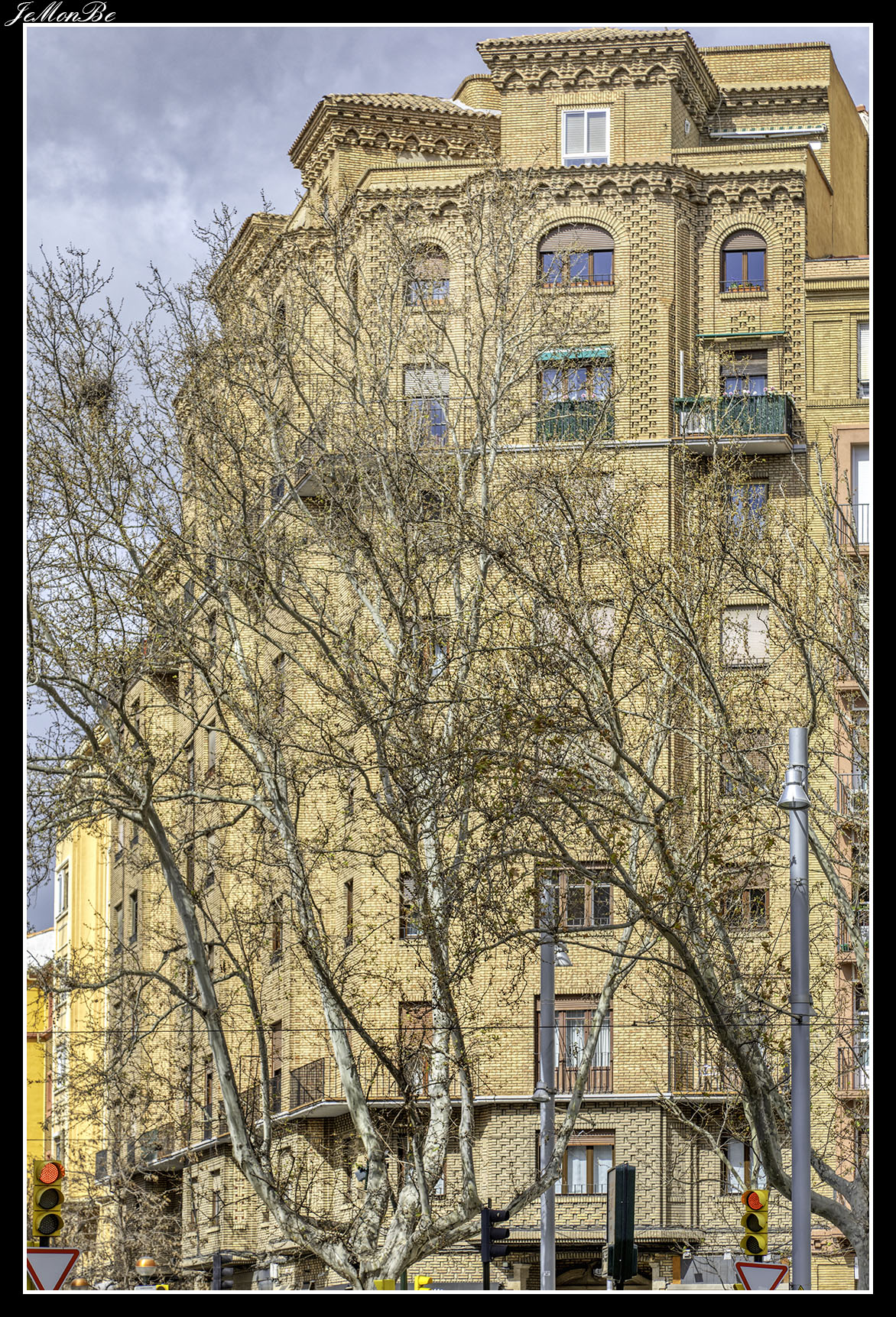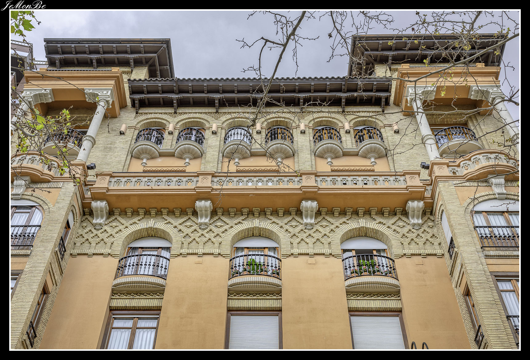 El nº 29 es un edificio de 1930 con una doble función: Sede del Heraldo de Aragón y edificio de viviendas. Tiene cinco plantas sobre los porches. En el nivel inferior se situaban las instalaciones del periódico y las viviendas ocupaban las superiores. Las fachadas tienen composición tripartita donde los porches son el basamento, las cuatro primeras plantas el cuerpo y el nivel superior, más ligero, el ático.El ángulo del inmueble se resuelve en un mirador sobresaliente y curvado que se remata con un torreoncillo cubierto por un alero muy volado. El arquitecto optó por el uso de la piedra y el enlucido suavemente bicromo.