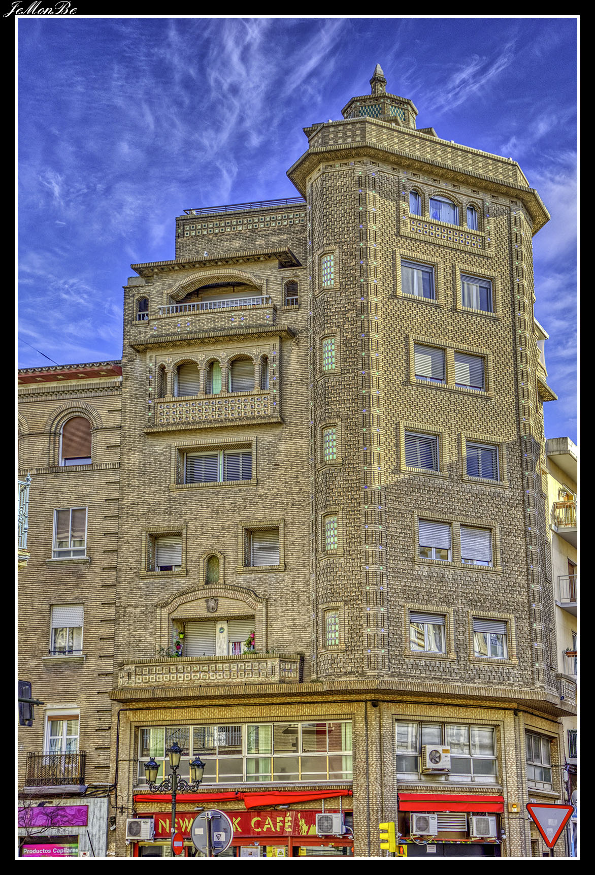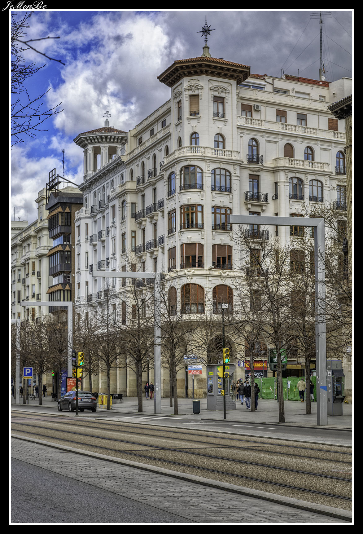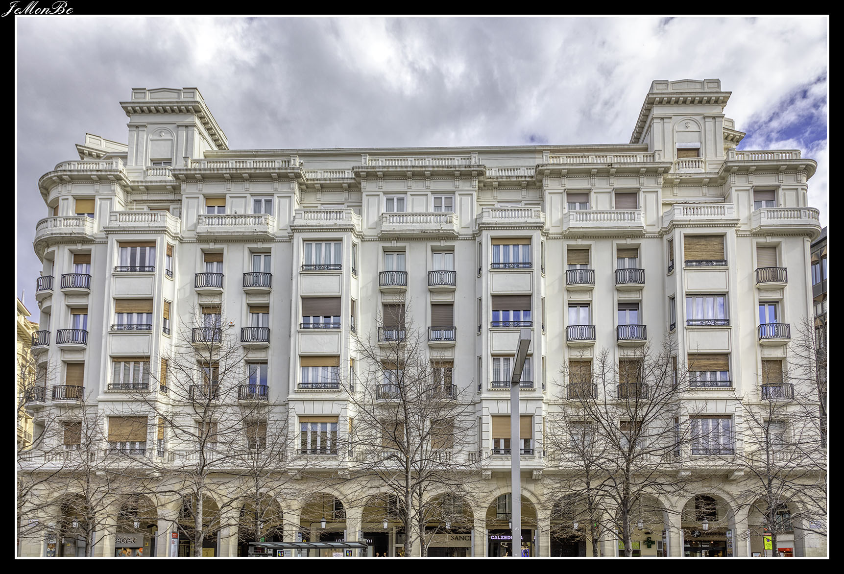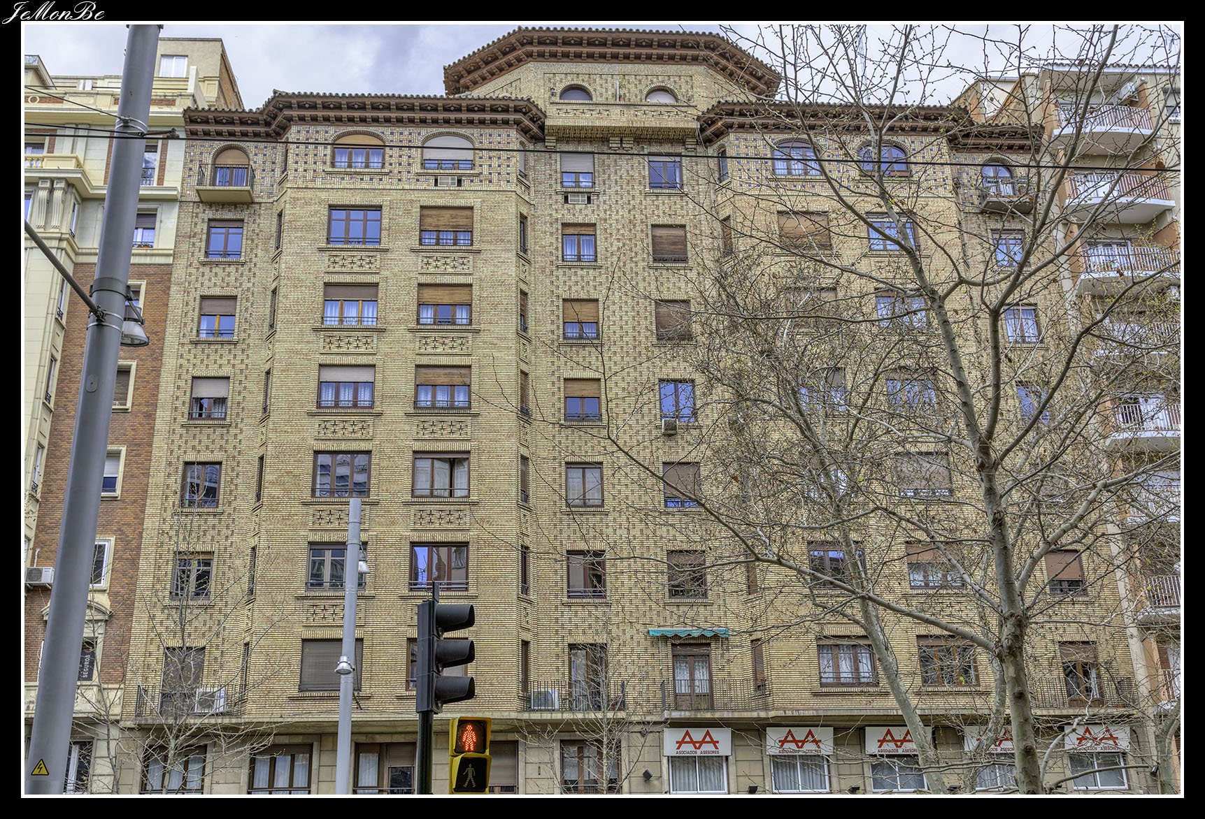 El nº 29 es un edificio de 1930 con una doble función: Sede del Heraldo de Aragón y edificio de viviendas. Tiene cinco plantas sobre los porches. En el nivel inferior se situaban las instalaciones del periódico y las viviendas ocupaban las superiores. Las fachadas tienen composición tripartita donde los porches son el basamento, las cuatro primeras plantas el cuerpo y el nivel superior, más ligero, el ático.El ángulo del inmueble se resuelve en un mirador sobresaliente y curvado que se remata con un torreoncillo cubierto por un alero muy volado. El arquitecto optó por el uso de la piedra y el enlucido suavemente bicromo.