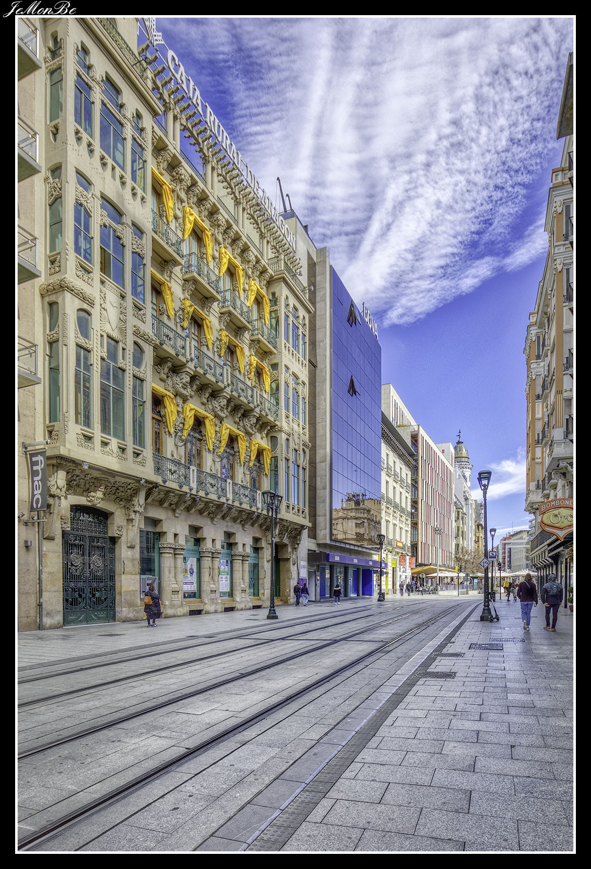 El Paseo Independencia está repleto de fachadas y soportales arcados, un gran muestrario de los estilos constructivos de cada época, donde el neoclasicismo convive en armonía y complementariedad al lado del modernismo.