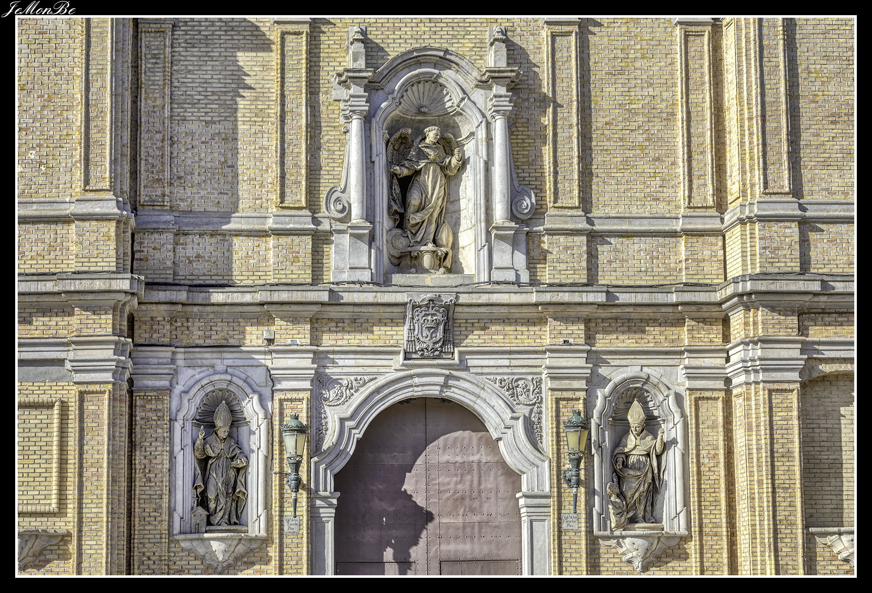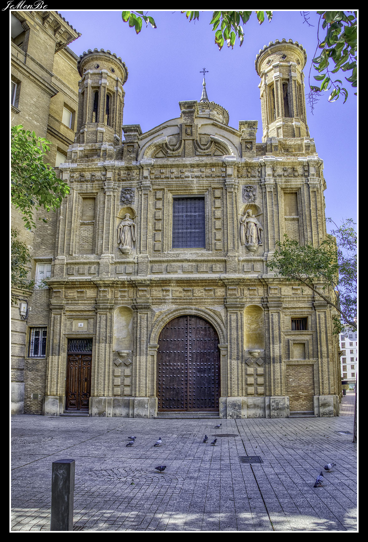 La iglesia junto con algunos restos del antiguo colegio son los únicos vestigios de la fundación original de los Escolapios, establecidos en Zaragoza desde 1733. Su fachada de ladrillo está dividida en tres cuerpos horizontales y tres calles verticales, flanqueada por dos torres que se adelantan a la fachada. A los lados la puerta, en arco mixtilíneo, se encuentran dentro de hornacinas las esculturas de Santo Tomás de Villanueva y de San Agustín, en un estilo Rococó. En el segundo cuerpo, sobre la puerta, se sitúa Santo Tomás de Aquino, representado como doctor angélico, a quien está dedicada la iglesia.