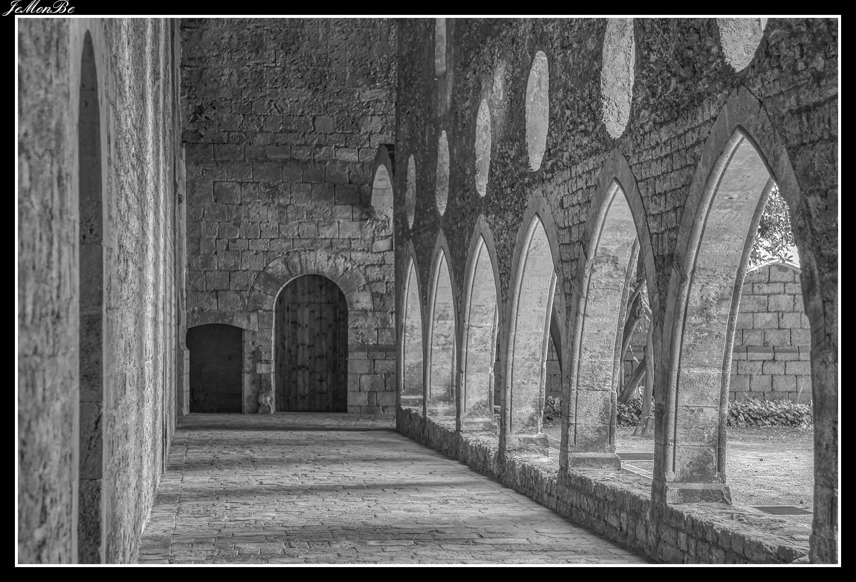 Al tercer recinto o el monasterio propiamente dicho, se entra por la denominada Puerta Real por la que se accede al claustro. Es una portada románica que bajo un arco ojival de descarga abre un arco de medio punto abocinado con arquivoltas baquetonadas lisas cuyas molduras se prolongan en vertical a modo de sutiles columnillas y elevado podio.