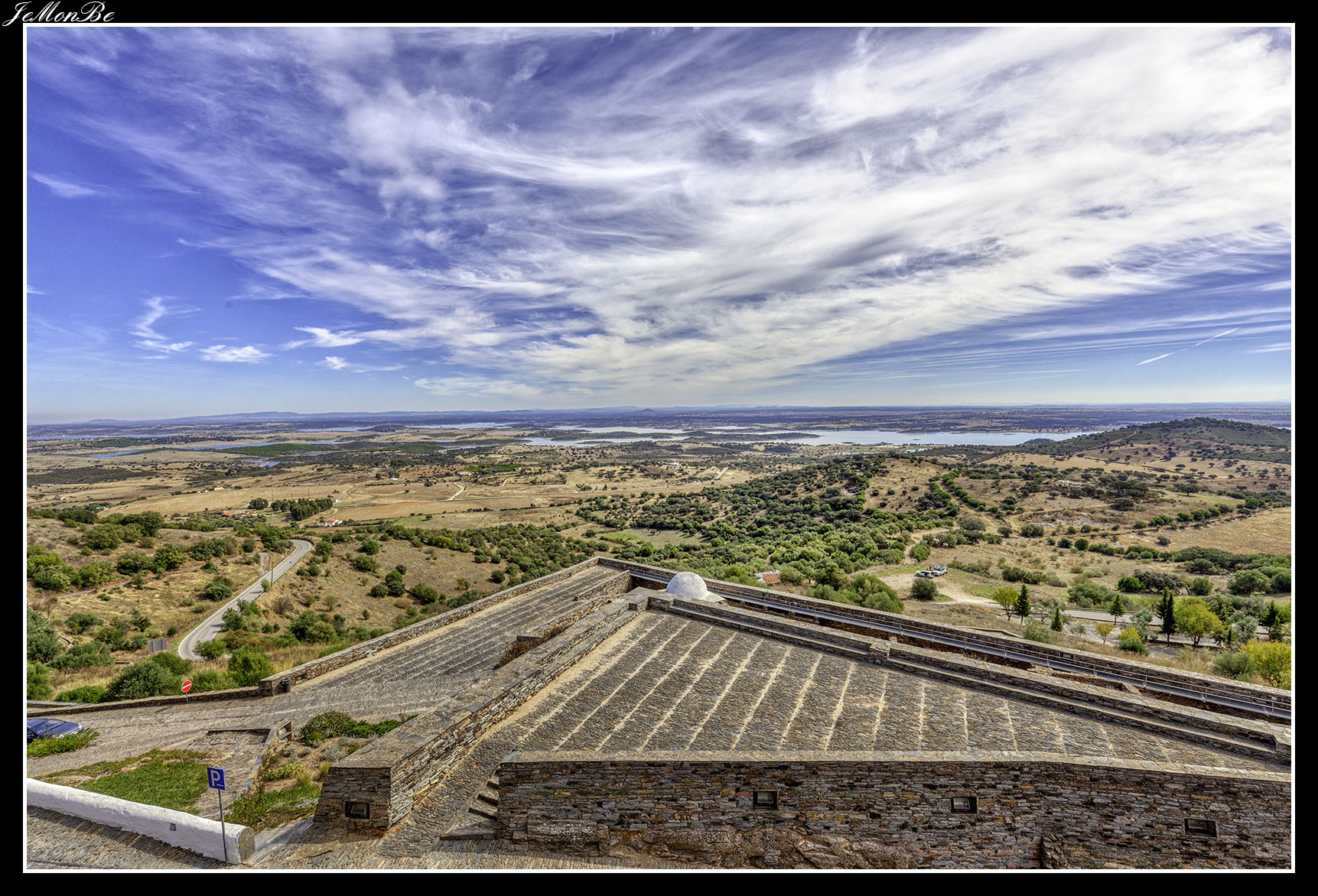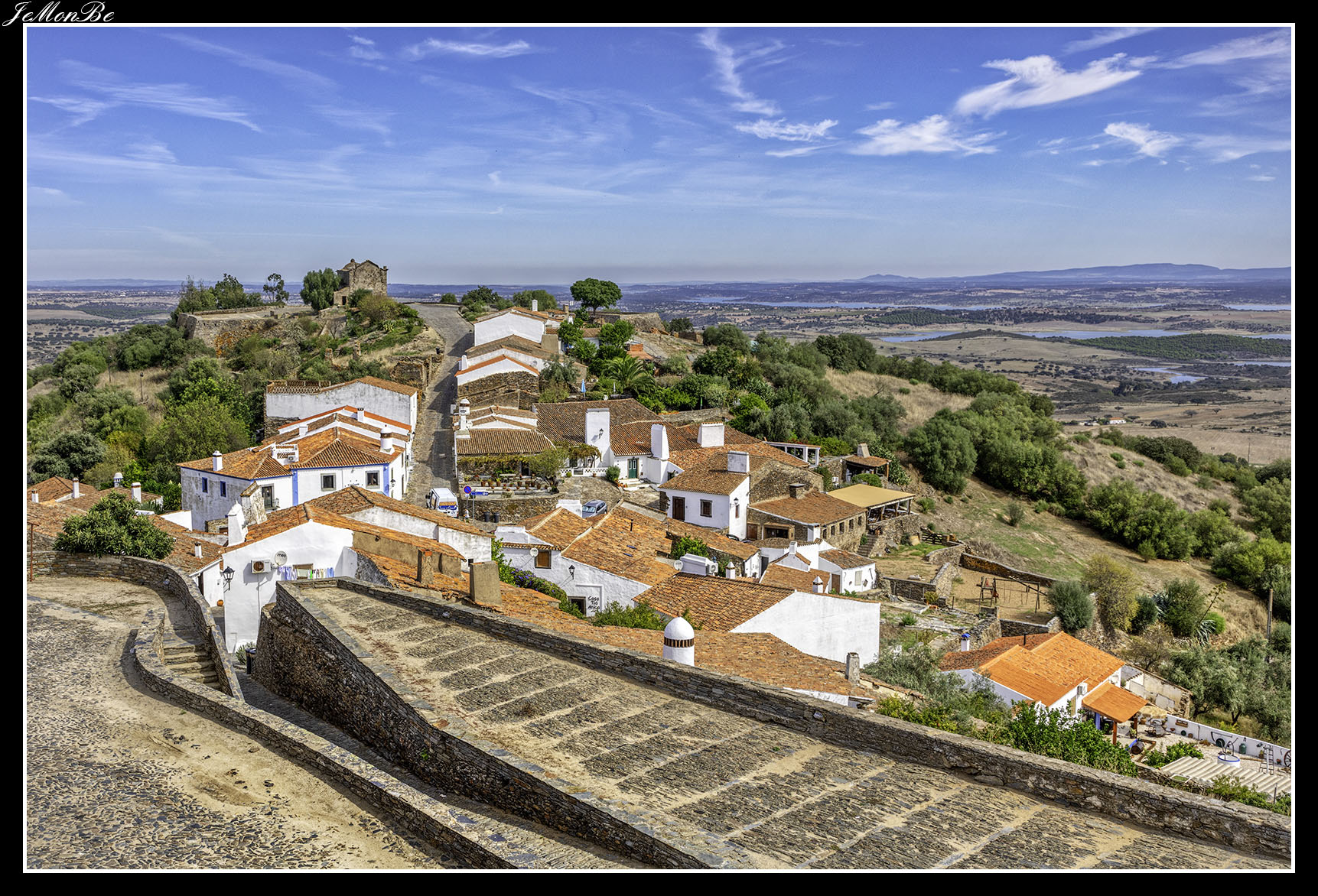 Monsaraz es una pequeña población rodeada de campos que descansa sobre lo alto de un peñasco, dentro de un castillo del siglo XIV que ofrece espectaculares vistas de la presa de Alqueva, que forma el mayor lago artificial de Europa y el valle del Guadiana.