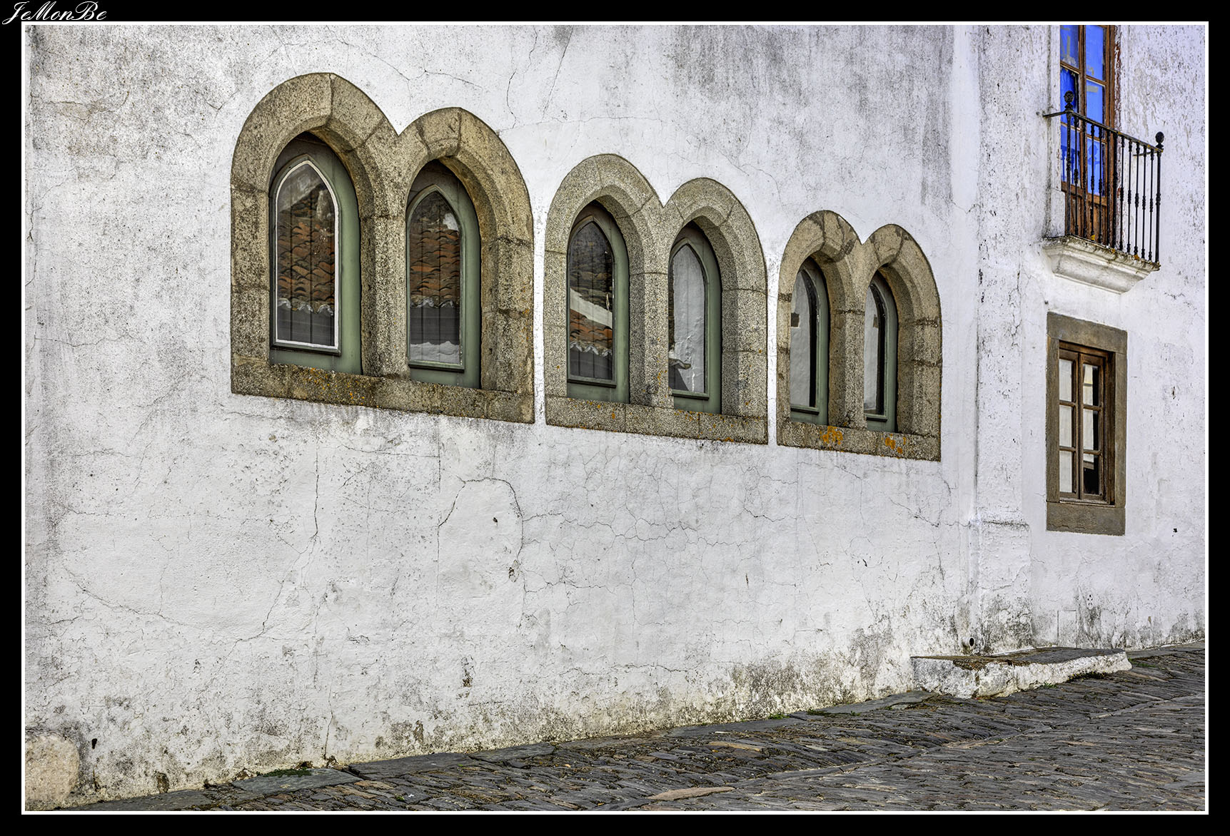 Girando por la Travesía de la Cisterna, un callejón que desemboca en otra de las puertas de acceso y que es parte de la muralla, la Puerta Buraco, con doble arcada.