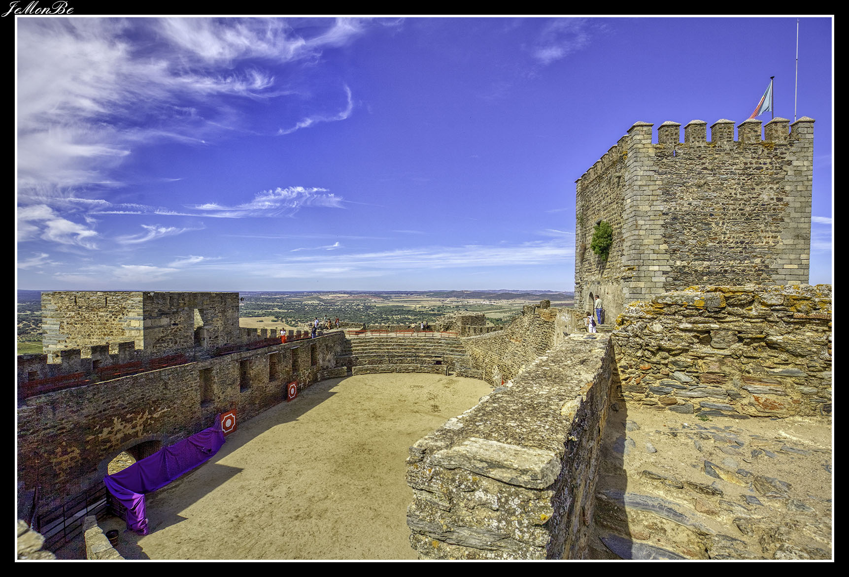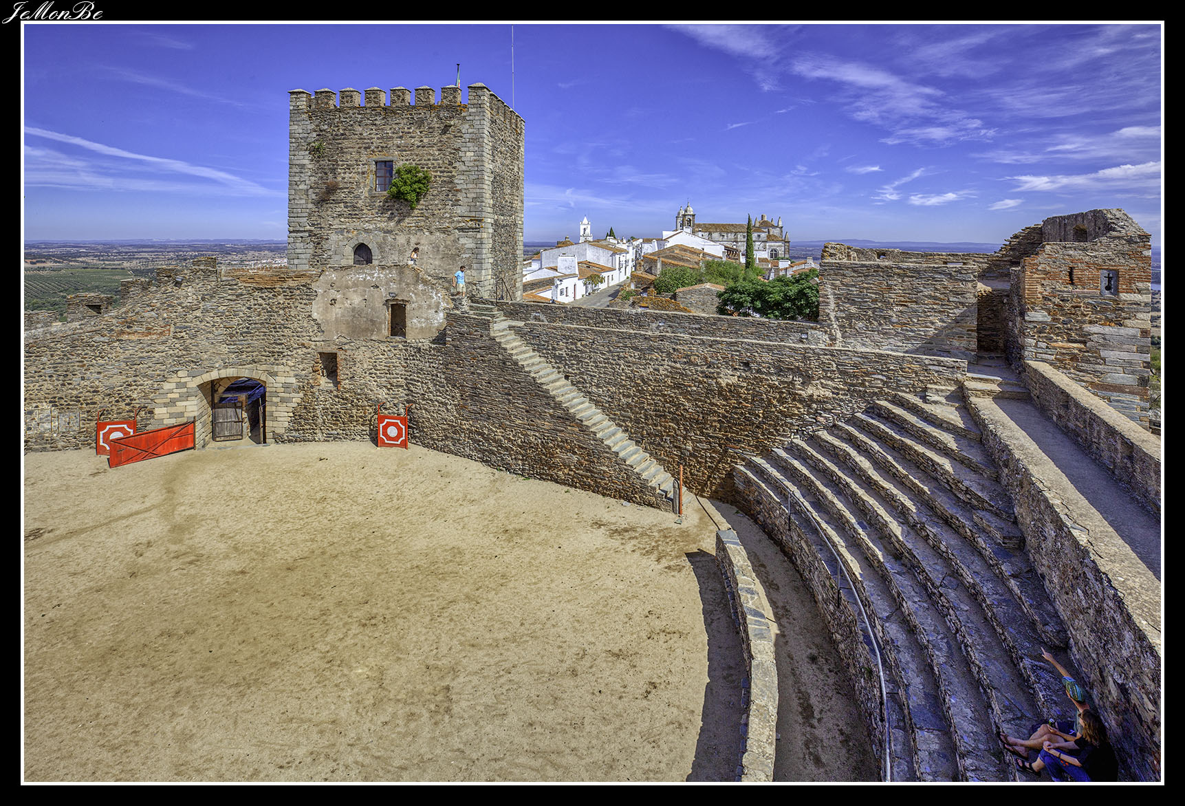 El Castillo de Monsaraz es una fortificación que data de finales del siglo XIII. Alrededor del año 1830, y tras el cese de sus funciones militares, la antigua plaza de Armas del castillo comenzó a ser utilizada como una plaza de toros. Hoy en día sirve a este propósito ya que se siguen realizando diferentes tipos de festejos taurinos.