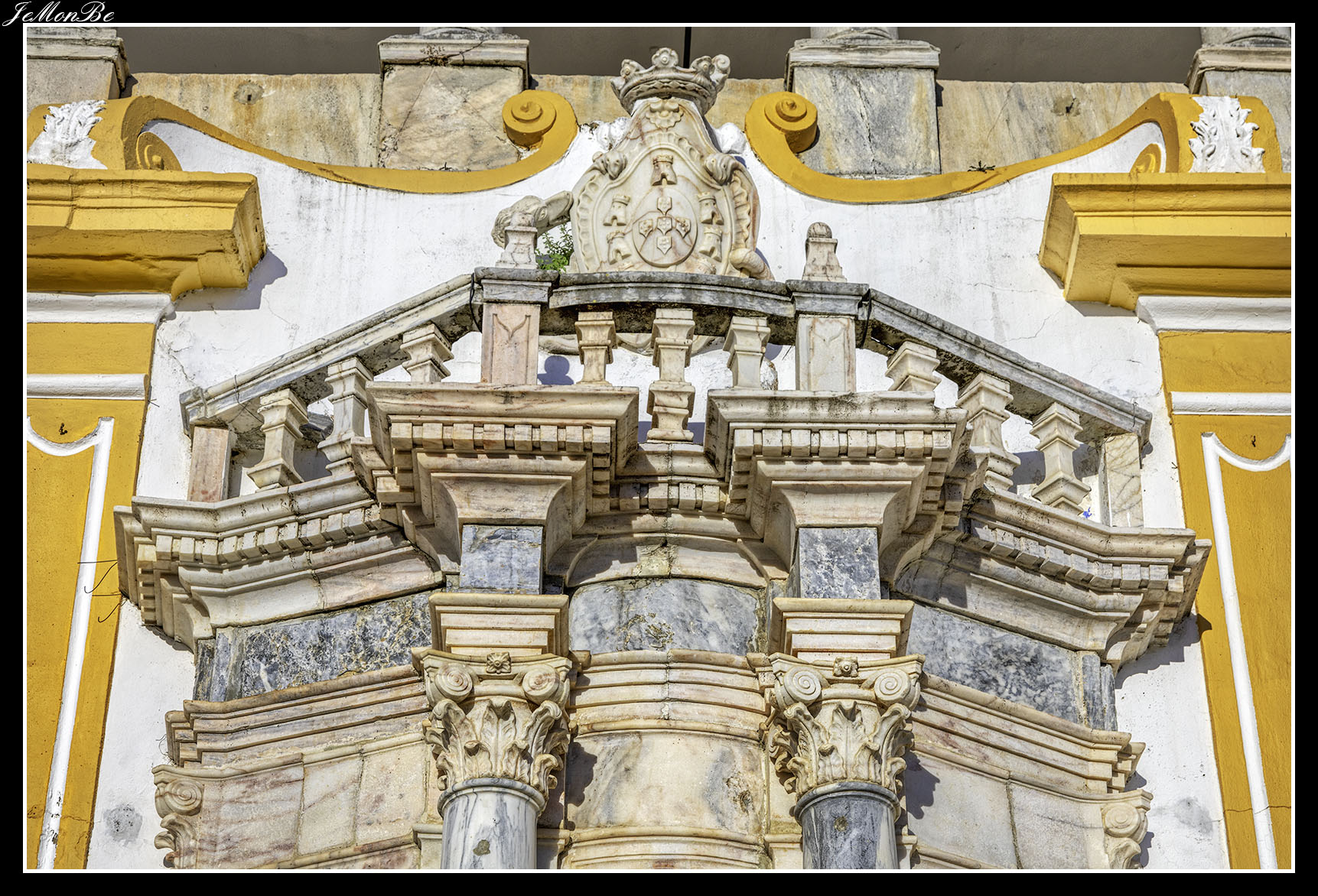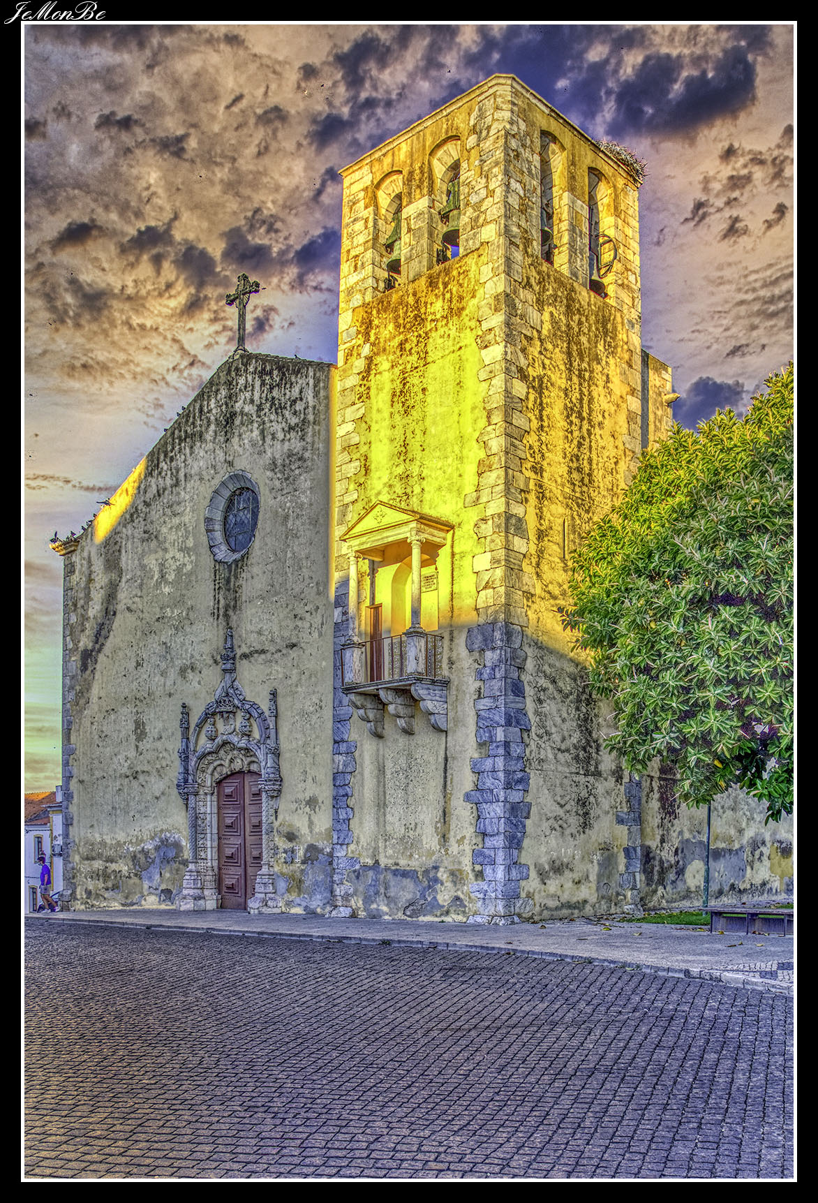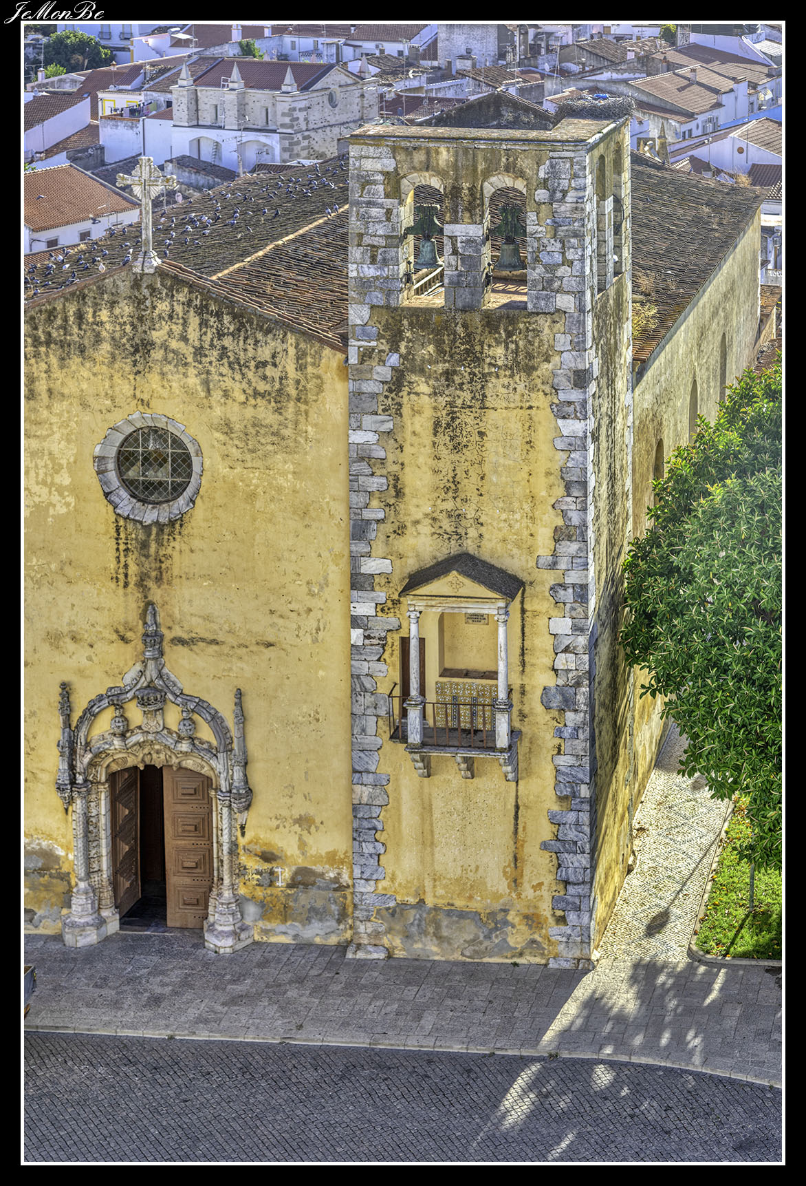 Con el crecimiento de la población se construyó extramuros la Iglesia de São João Baptista de Moura, con portal manuelino decorado con esferas armilares que flanquean el blasón del reino. Sorprende por su torre con balcón, utilizado en el pasado para decir la misa a los reclusos de la cárcel de enfrente. Junto a ella está el típico patio dos Rolins (siglo XVI) con dos ventanas de arco conopial, la fuente de las Tres Bicas (caños) y el jardín público del Doctor Santiago.