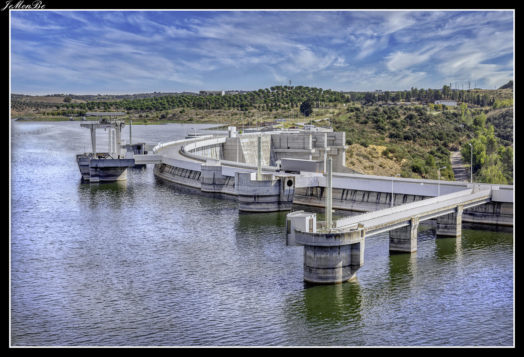 Es uno de los mayores lagos artificiales de Europa, construido en el río Guadiana, con una superficie de 250 km2, abarcando cinco municipios del Alentejo.