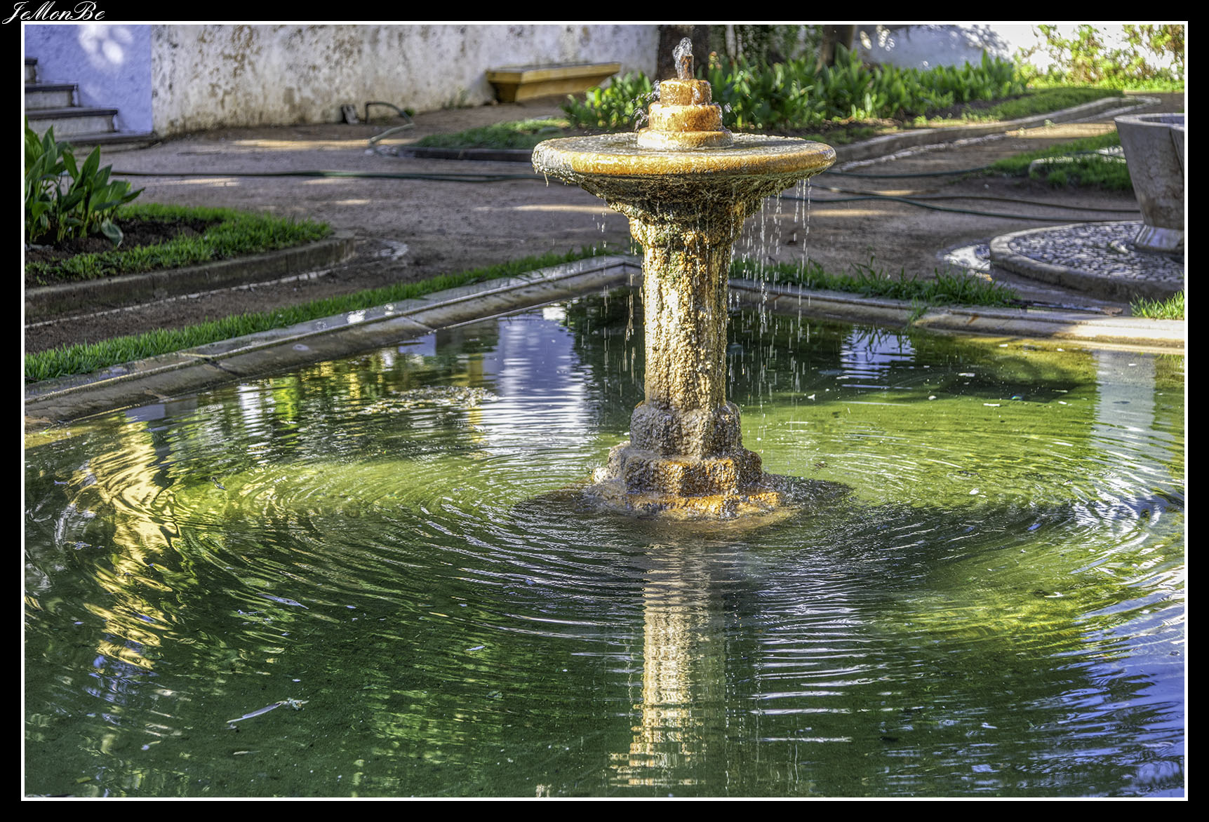 El jardín del doctor Santiago tiene fuentes, bancos y un parque infantil.