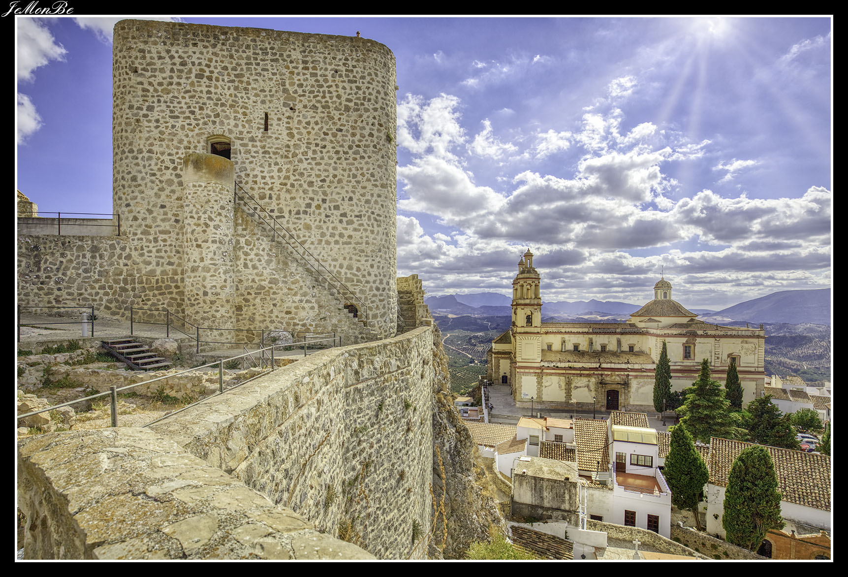 El casco histórico es laberíntico y empinado. En lo alto, se alza el castillo, construido por los nazaríes a finales del siglo XII, fue un baluarte defensivo del reino nazarí de Granada. El bastión defensivo más destacado del castillo es la torre del homenaje, con dos plantas rematadas por una bóveda de medio cañón. La iglesia arciprestal de Nuestra Señora de la Encarnación está muy cerca del castillo. Con dos torres gemelas, fue mandada construir por los duques de Osuna, que eran los señores de la población a finales del siglo XVIII.