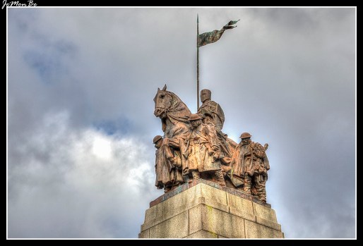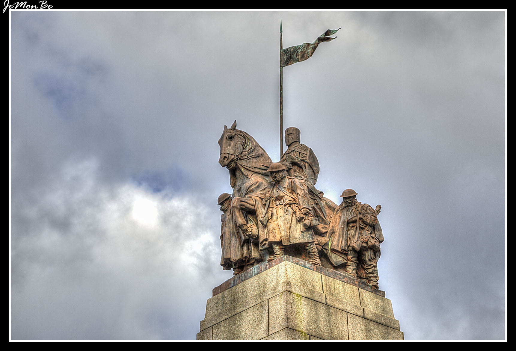 En lo alto hay una estatua de bronce «el alcohol de las cruzadas» que retrata a soldados del frente occidental acompañados por un caballero medieval a caballo.