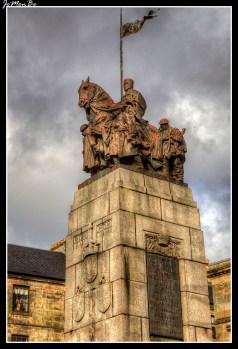 En lo alto hay una estatua de bronce «el alcohol de las cruzadas» que retrata a soldados del frente occidental acompañados por un caballero medieval a caballo.
