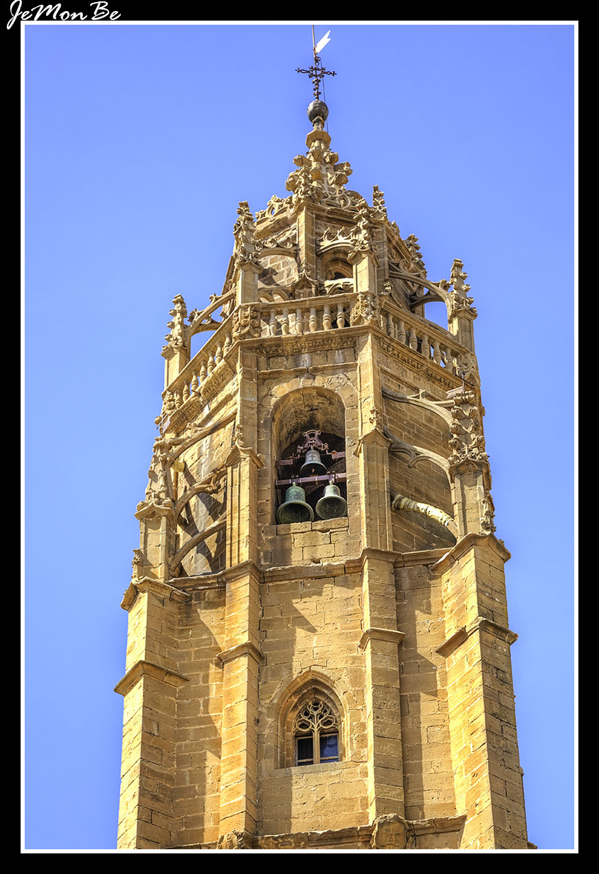 Al exterior presenta dos portadas de acceso, una en el lado de la Epístola y otra a los pies de la iglesia, considerada como puerta principal y que presenta estructura gótica con seis arquivoltas en arco apuntado y decoración renacentista en torno al tímpano. Destacaría también la torre, en piedra arenisca, como el resto de la iglesia, cuyo elemento más característico sería el remate con una crestería, pináculos, una aguja maciza y decoración vegetal de tradición gótica.