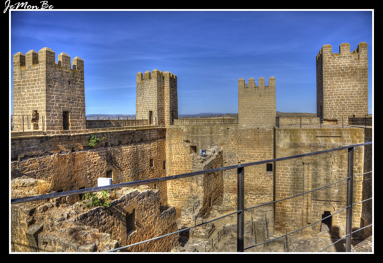 El Castillo de Sádaba es de estilo bajomedieval con decoraciones cistercienses del siglo XIII. No muestra elementos defensivos, como la torre del homenaje o el foso o la barrera; las saeteras y los vanos son escasos y no posee matacanes. Como propias defensas tiene el grosor de sus muros, con torres cuadradas rematadas en almenas, y los adarves; a parte del acceso en recodo, de influencia árabe.