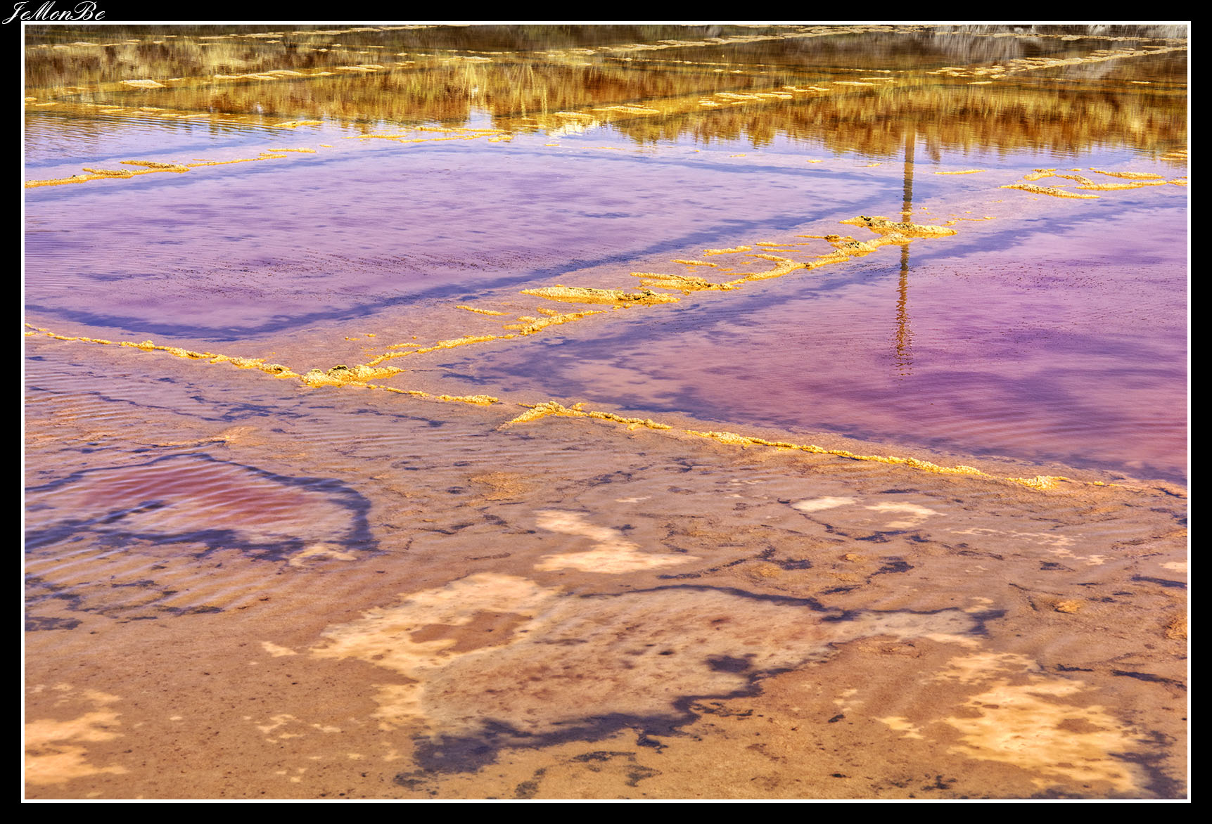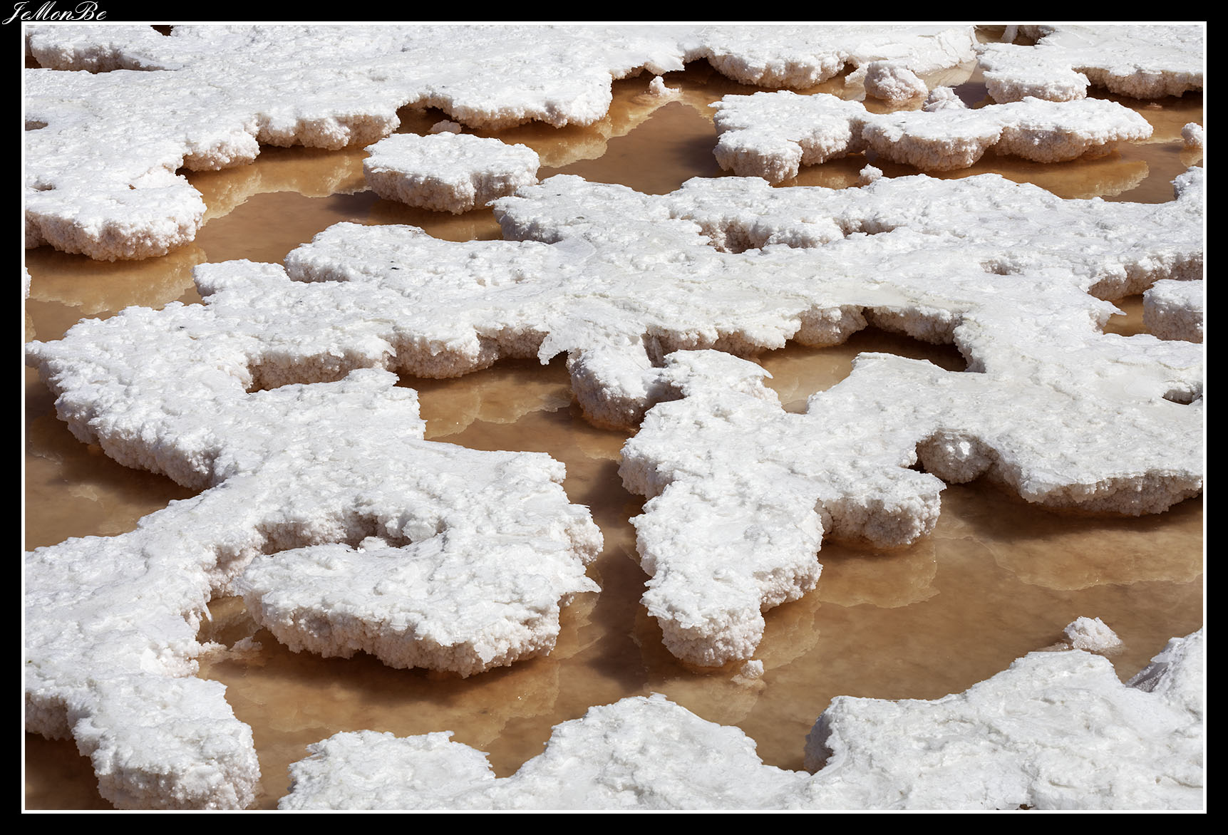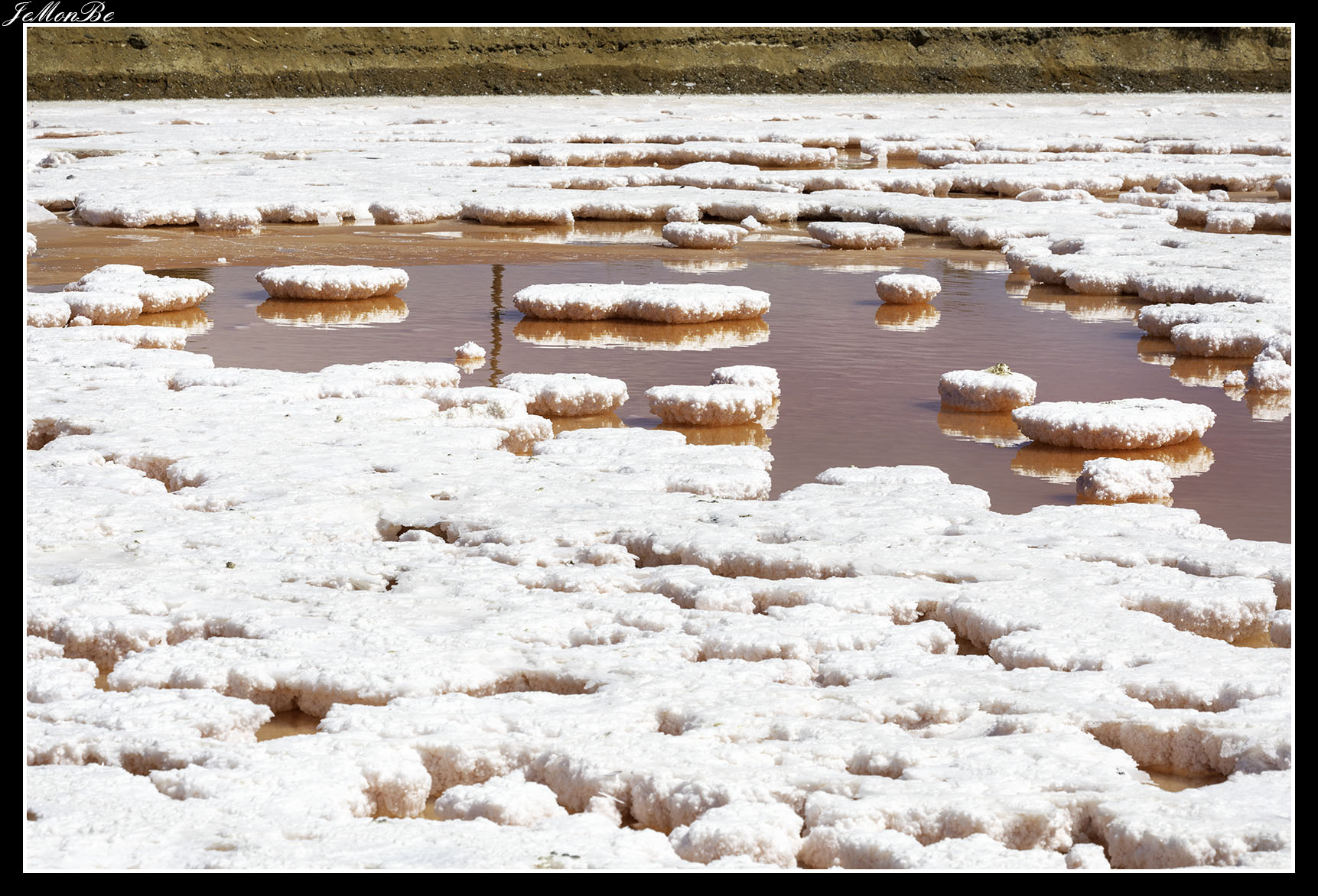 Un laberinto de canales guía el agua del mar, que se vierte en pequeñas parcelas poco profundas donde reposa hasta que el calor del sol evapore el agua dejando a relucir los cristales translúcidos.