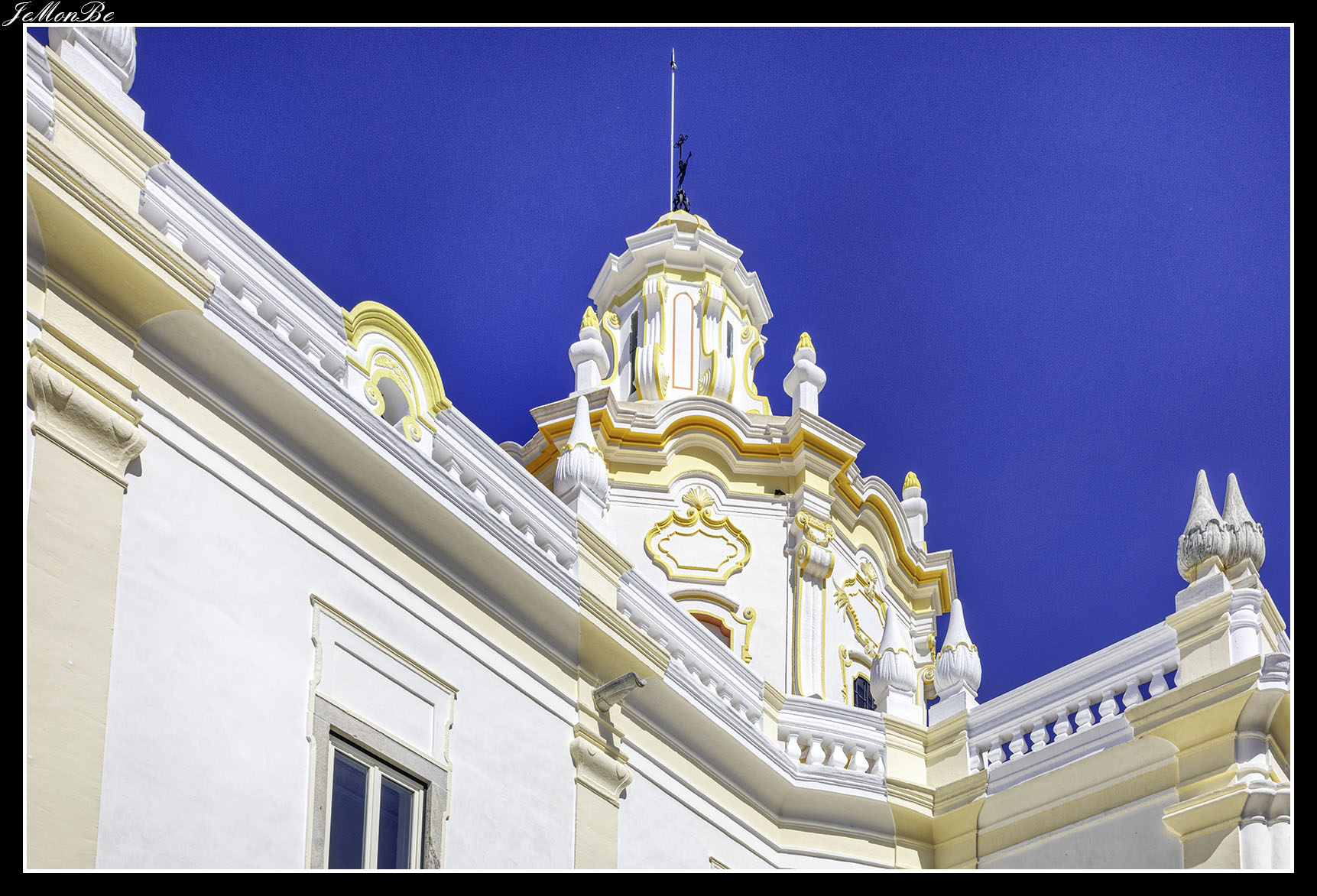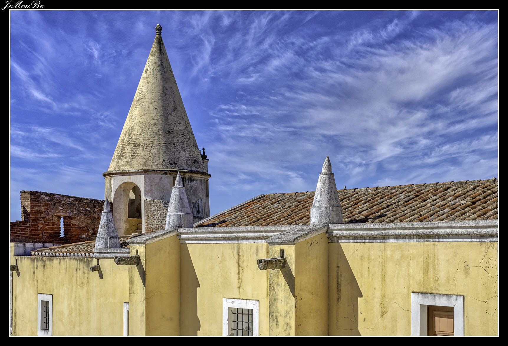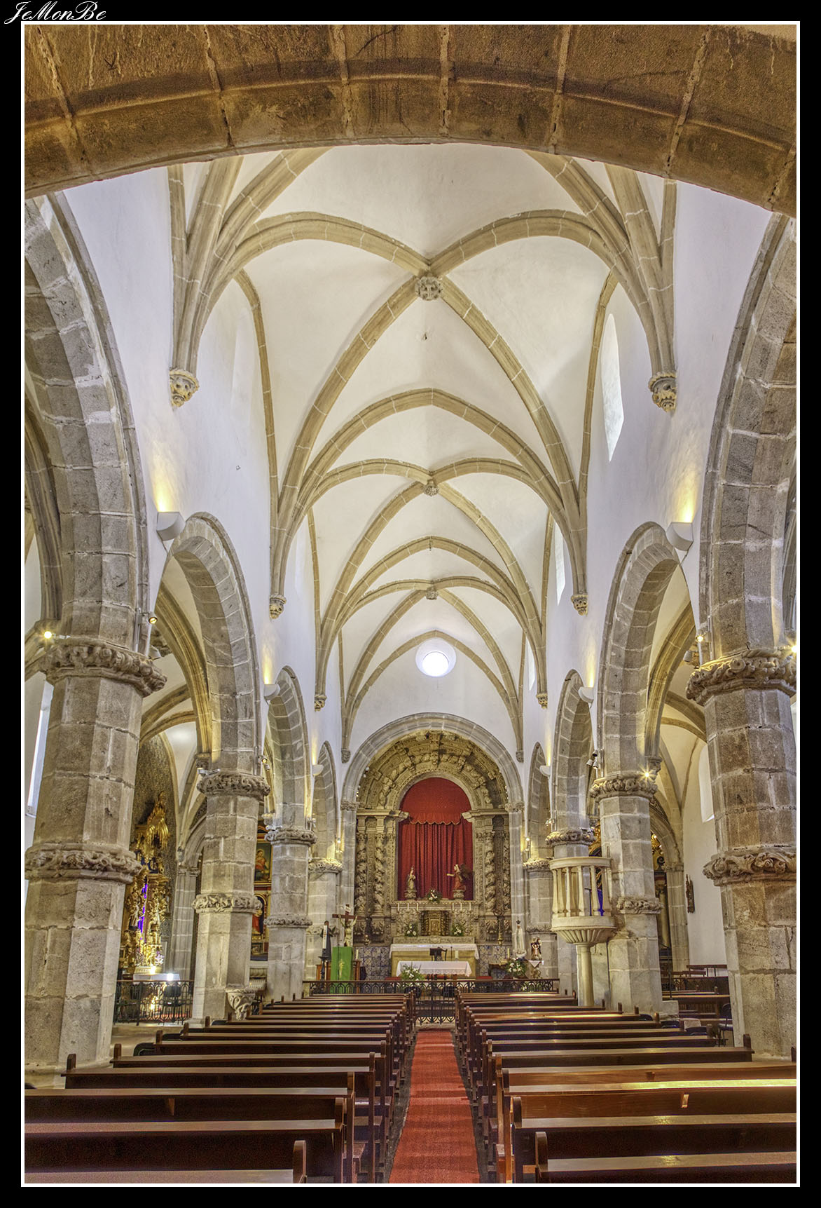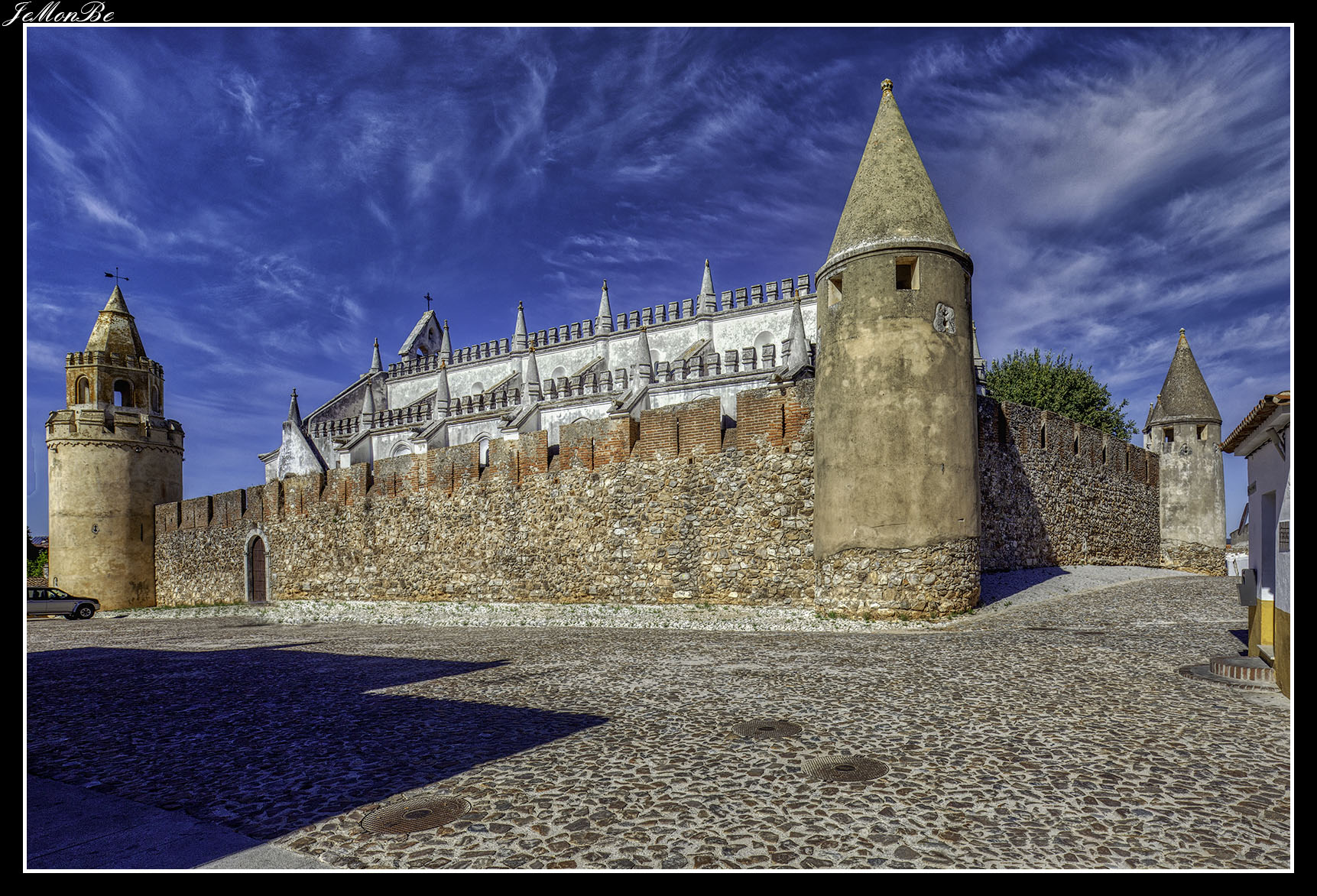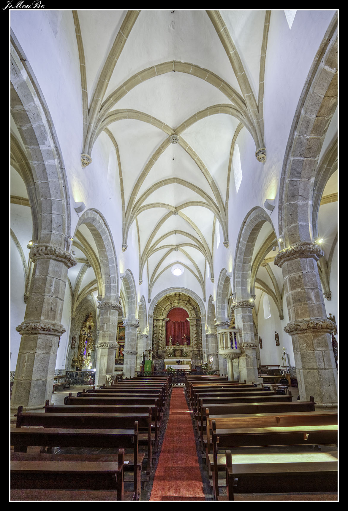 La iglesia Matriz es un templo manuelino, adosado a la muralla, destaca la portada de la encalada iglesia.