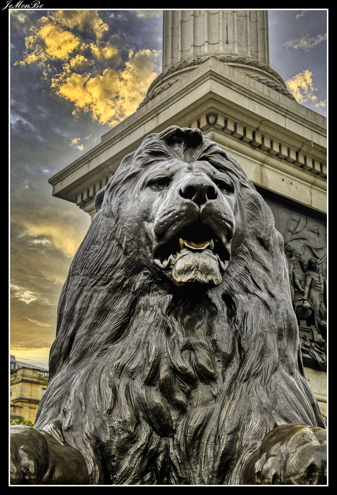 Los leones de Trafalgar Square son cuatro estatuas de bronce que custodian la Columna de Nelson en Londres. Se dice que si la campana del Big Ben sonase trece veces, los leones cobrarían vida.