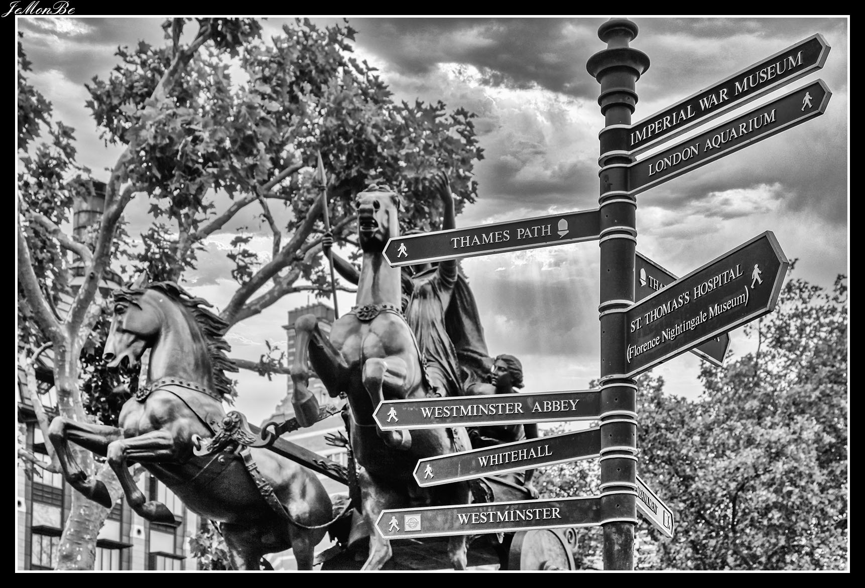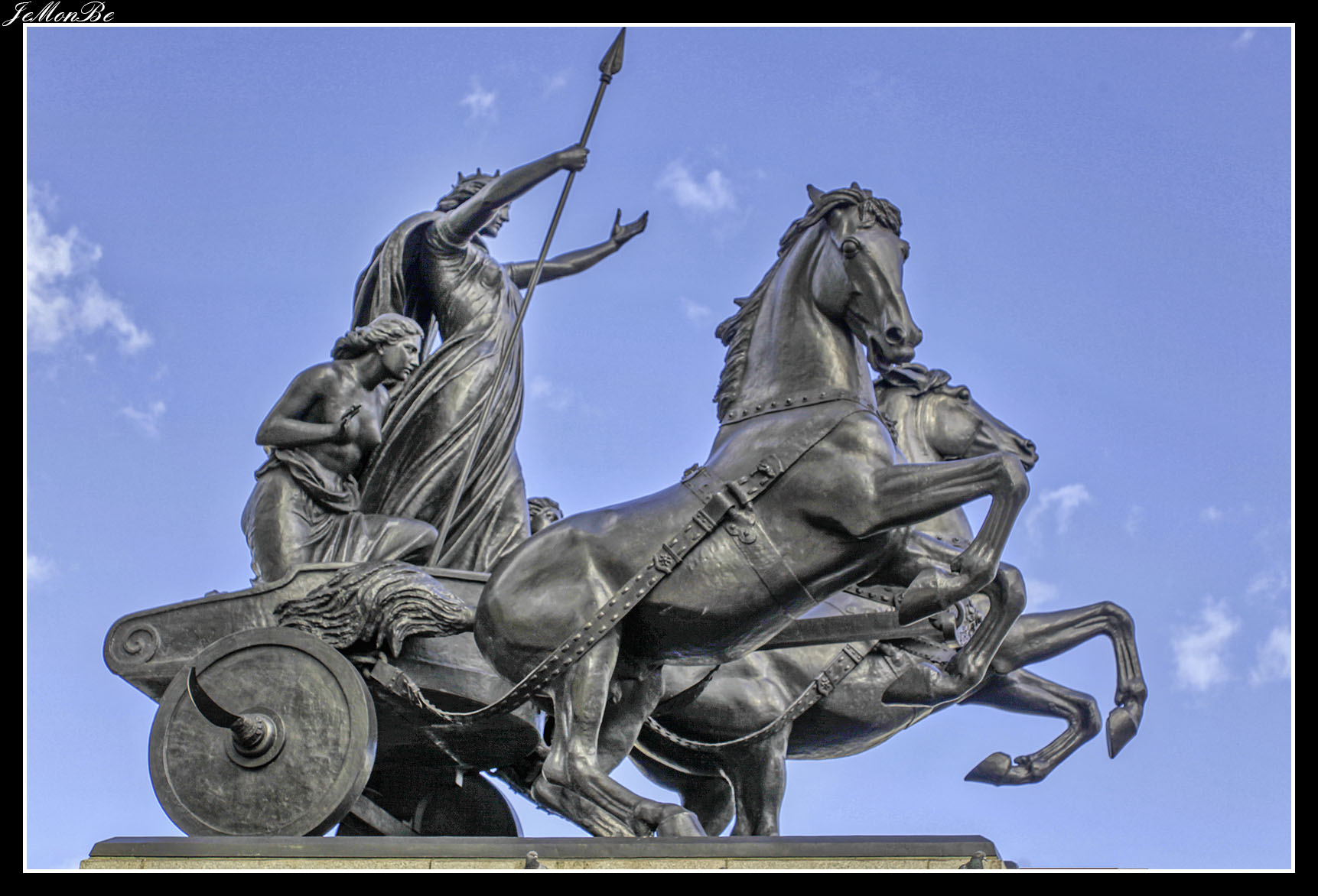 Boudica y sus hijas es un grupo escultórico de bronce ubicado muy cerca del Palacio de Westminster representa a Boudica , reina de la tribu de los icenos, acompañada de sus dos hijas, montada en un carro con guadañas tirado por dos caballos encabritados. Está de pie, con un vestido vaporoso, con una lanza en la mano derecha y la mano izquierda levantada. Sus hijas, con los pechos descubiertos, están agachadas en el carro, una a cada lado de su madre. Ninguna de ellas lleva las riendas para controlar los caballos.