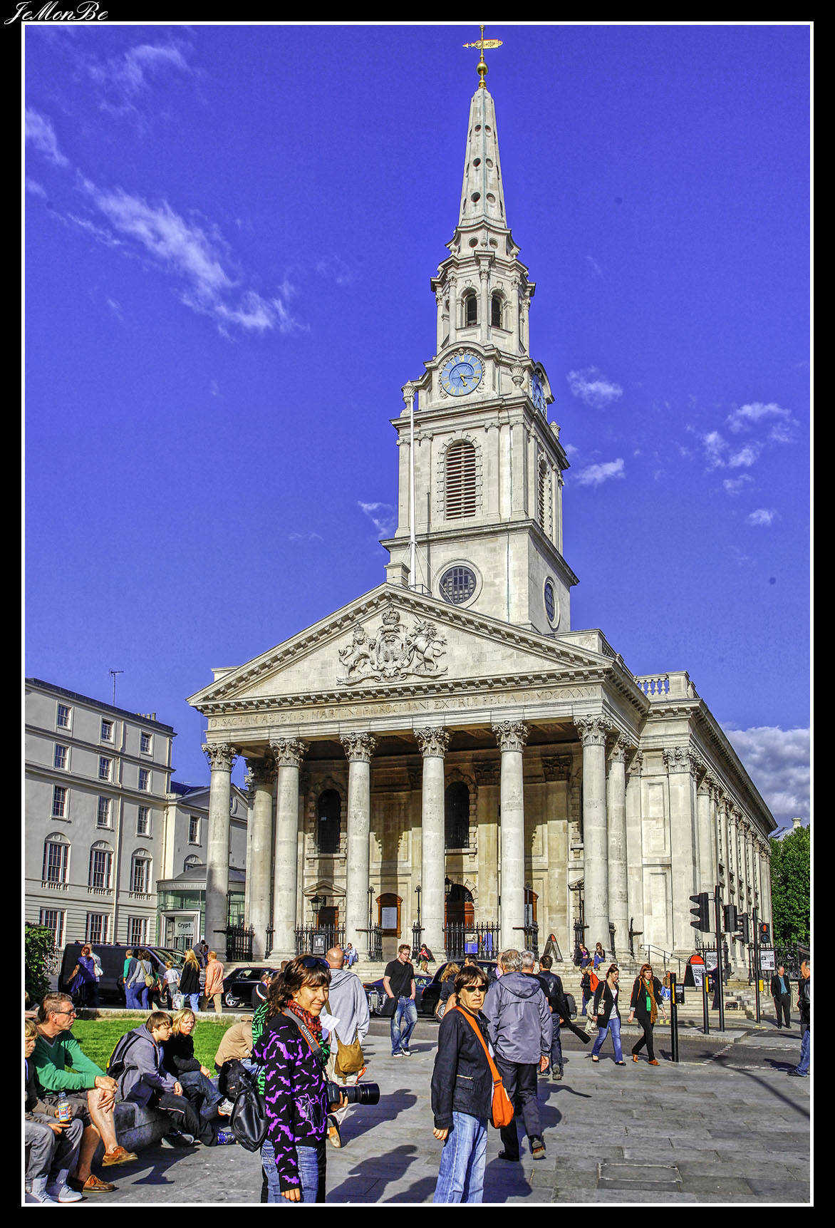 St Martin-in-the-Fields es una iglesia situada en una esquina de Trafalgar Square, fue construida en 1721, en un recién surgido estilo, neoclásico, como reacción al excesivo ornamento y decoración del barroco y rococó. Inspirado en la arquitectura de la antigua Grecia y Roma, el neoclasicismo buscaba recuperar la simplicidad, armonía y proporción de las formas clásicas, con fachadas sobrias, simétricas, ordenadas y elegantes, con sus columnas, frontones y elementos decorativos característicos de este estilo.