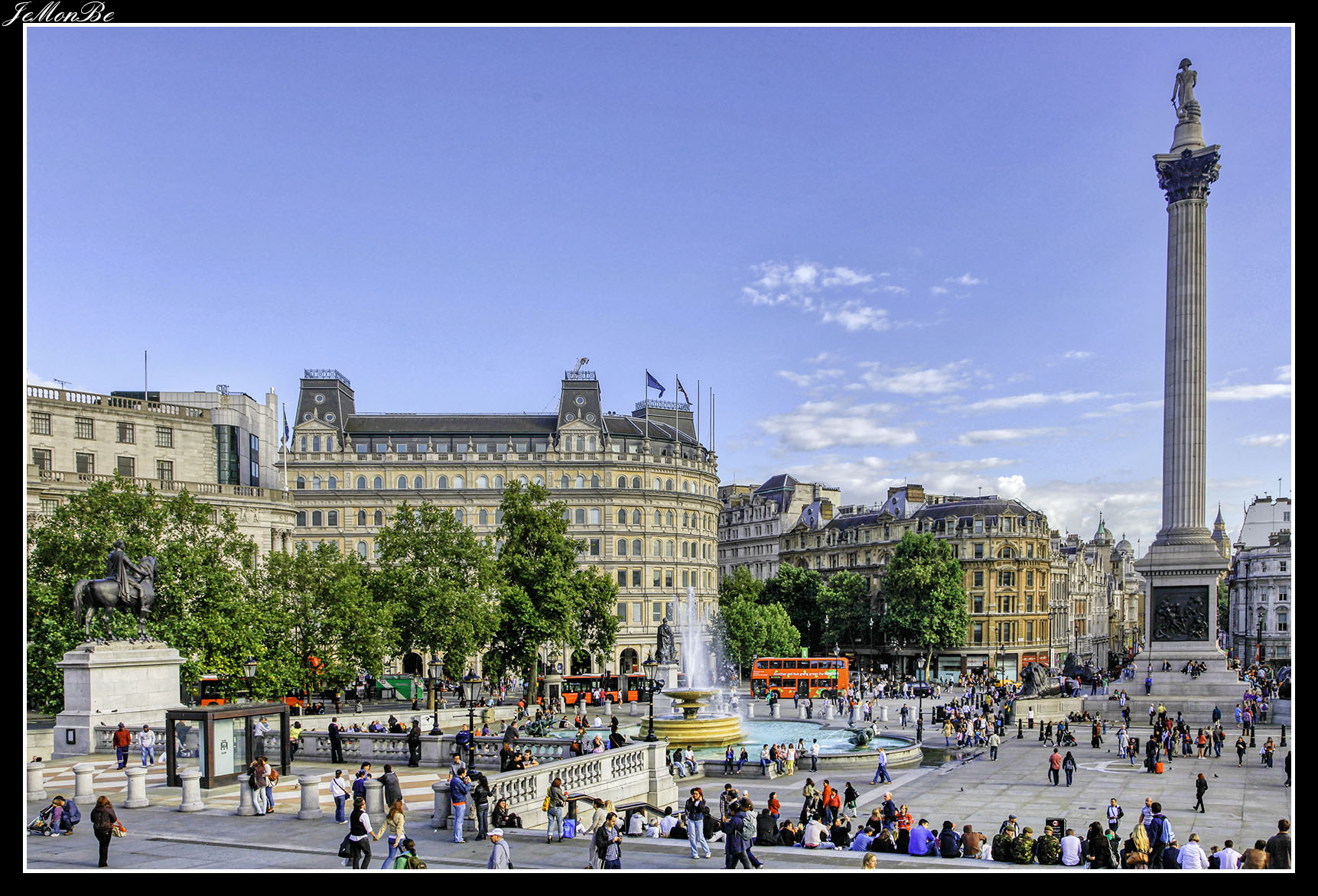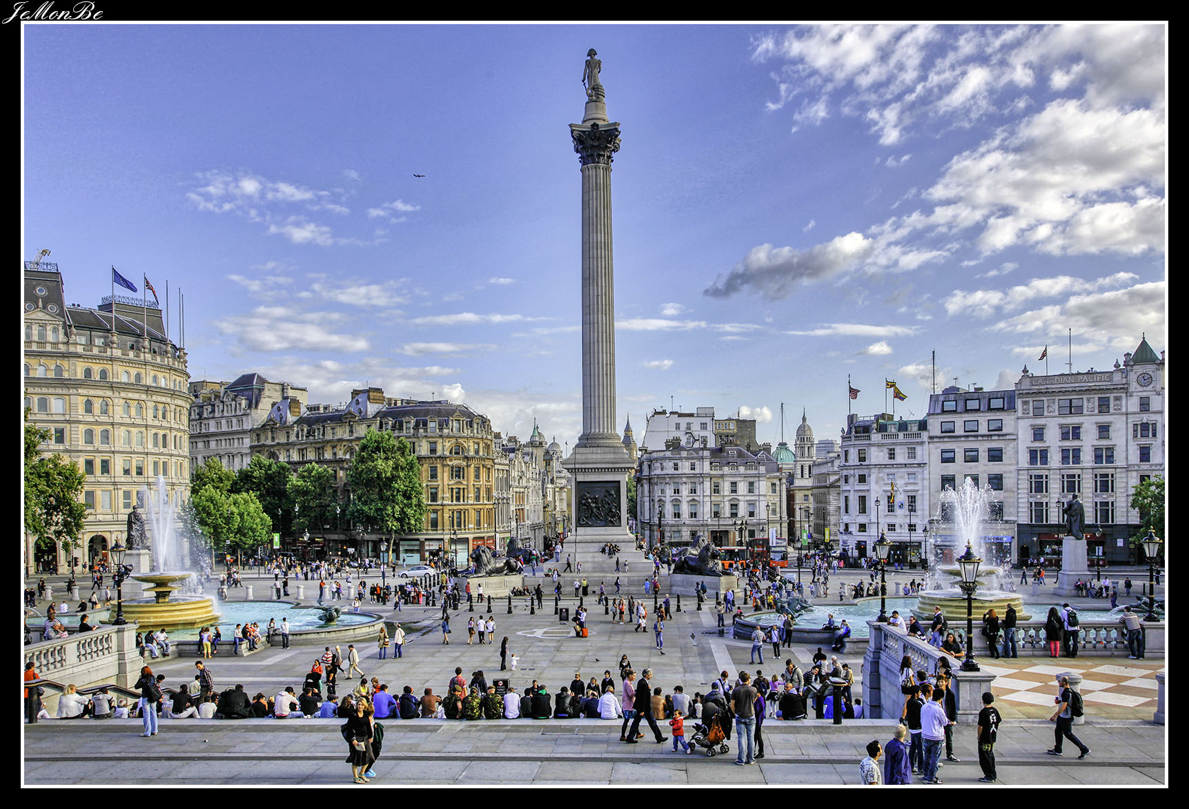 A la plaza Guillermo IV se le cambio el nombre tras la batalla librada frente al cabo de Trafalgar entre las armadas francesa y española contra la británica, en 1805. En el centro se erigió la columna de Nelson en homenaje a Horatio Nelson, almirante británico fallecido en el transcurso de la batalla.